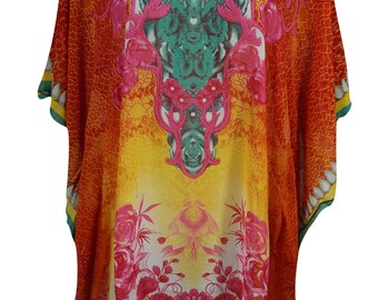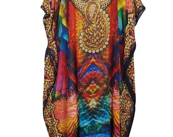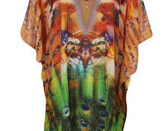 Yellow Floral Kaftan Dress DIGITAL Beautiful Printed Kimono Sleeves Summer Comfy Beach Cover Up Short Semi Sheer Caftan Onesize