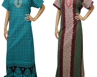 $42.59Green, Pink 2 pc Women's Nighty Maxi Dress Printed Cotton Bohemian Night Wear Nightgown Caftan XL
