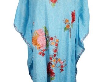 Boho Chic Caftan Dress Floral Embellished Blue Beachwear Womens Summer Kaftan Evening Dresses 3XL