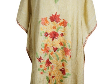 Womens Caftan Dress Cotton Beige Floral Embroidered Maternity Dresses Summer Loose Kimono Kaftan 2XL