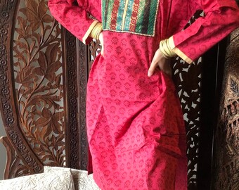 Women's Tunic Dress Cotton Blush Pink Hand Embroidered Bohemian Cover Up Ethnic Long Tunic M
