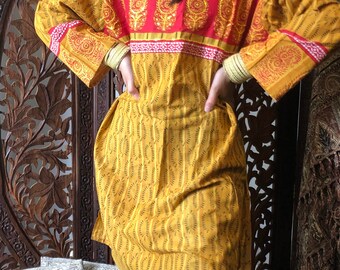 Only 1 available and it's in 1 person's cartWomens Long Tunic Dress Block Yellow Red Printed Summer Blouse Bohemian SUMMER Indian Style Kurti XL