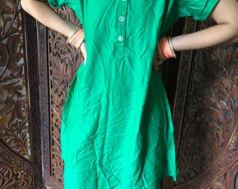 Only 1 available and it's in 1 person's cartWomens Tunic Blouse, green Cotton Silk Traditional Fashion Handmade Ethnic Top/Kurti M