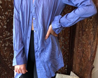 Womens Shirt Blue Button Front Blouse Bohemian Summer Cotton Tops M