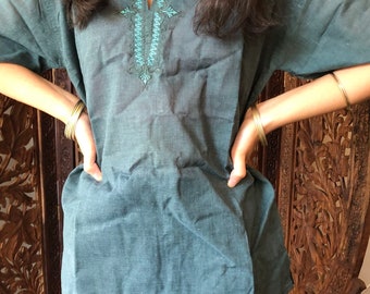 Womens kurta, Yoga Shirt, Blouse Cotton gray BOHO Comfy House Tunic Top Summer Style Shirt/Top M