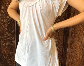 Women's White Blouse, Boho Hippy Top, Summer Casual Bohemian Beach Gypsy Tops SM