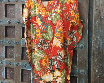 Womens Caftan, Soft orange Cotton Voile Caftan Maxi Dress Summer Cover Up Kaftan xL
