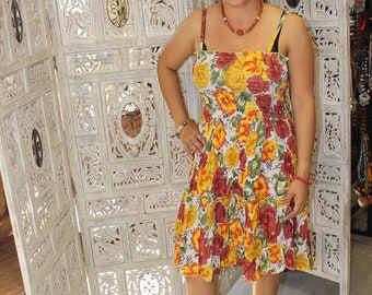Women's Strap dresses Yellow Red Printed Summer Beach Dress Comfy Cotton Sundress SM