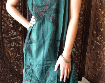 Women's Summer Beach Dress, Soft Green Palm Tree Embroidered, Loose Coverup Bohemian Tank Dresses ML
