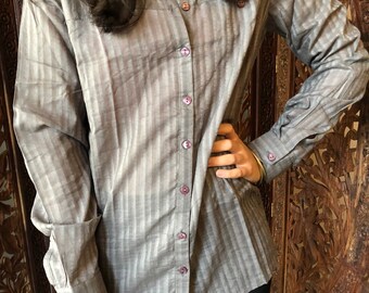 Only 2 available and it's in 1 person's cartWomen's Boho Blouse, Soft Cotton Gray Shirt, Khaki Gray, Button Front Blouse Bohemian Summer Tops M