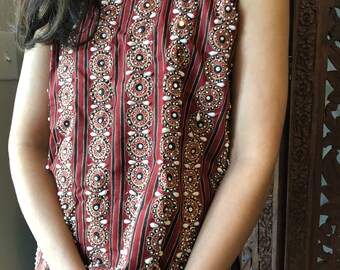 Only 1 available and it's in 1 person's cartWomens Tunic Top, Maroon Beaded Blouse Bohemian Handmade Cotton Summer Sleeveless Tops SM