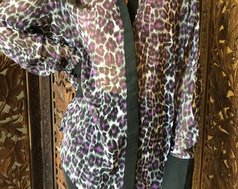 Only 1 available and it's in 1 person's cartWomen Boho Casual Shirt , Soft Chiffon Printed Black Purple Blouse, Sheer Long Sleeves, Bohemian Summer Blouse M