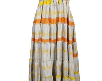 Womens Maxi Skirt Yellow Strapless Dress Floral Printed Recycled Sari Summer Bohemian Skirt S/M
