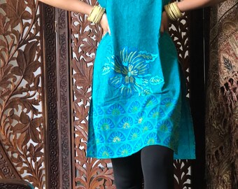 Only 1 available and it's in 1 person's cartWomens Tunic Dress Blue Printed Embroidered Summer Cotton Handmade Bohemian Kurti M