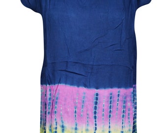 boho Tunic Top Blue tie dye sHORT Sleeveless Boho Style Gypsy Tops Fashion Bohemian hippy Blouse X-L
