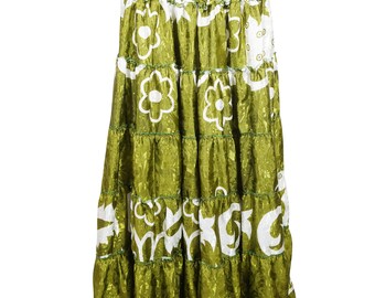 4 people have this in their cartWomen Maxi SKIRT, Green Floral Printed Dress, Summer Beach skirt, Strapless Dress, 2in 1 skirt/dresses S/M