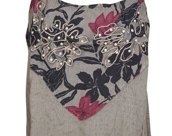 Women Floral Skirt , Summer Blue Gray Printed Dresses, 2 in 1 Recycled Sari Bohemian Beach Dresses S/M