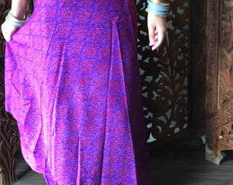 Womens Sari Magic Wrap Around Skirts PURPLE Vintage Ethical Boho Hippy Reversible Beach Dress OneSize