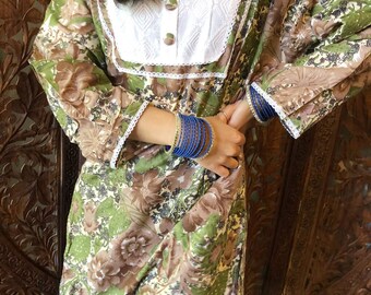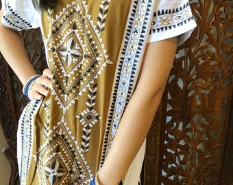 3 people have this in their cartWomens Tunic Long Dress, Green Embroidered Cotton Tunic , House Dress, Casual Ethnic Indian Kurti M