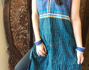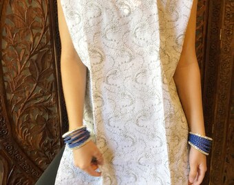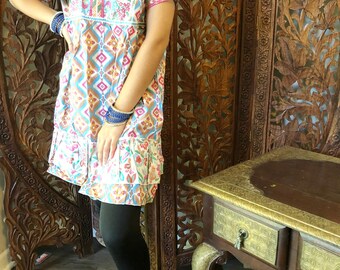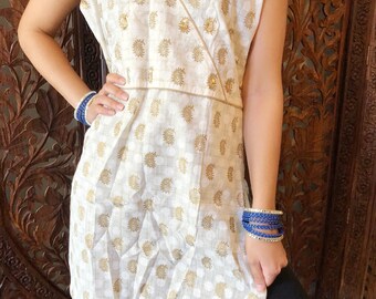 Only 1 available and it's in 1 person's cartWomens Tunic Dress, Sleeveless Handmade White Tunic, Summer Cotton Bohemian Beach Ethnic Kurti SM