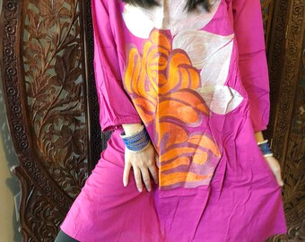 Only 1 available and it's in 1 person's cartWomens Tunic Dress, Pink Embroidered Boho Housedress, Handmade Cotton dress, Loose Comfy Beach Dress SM