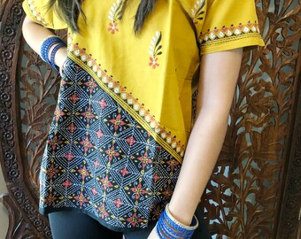 Only 1 available and it's in 1 person's cartWomens Tunic Top,Yellow Black Blouse, Embroidered Shirt Tunic Cotton Summer Casual Tops SM