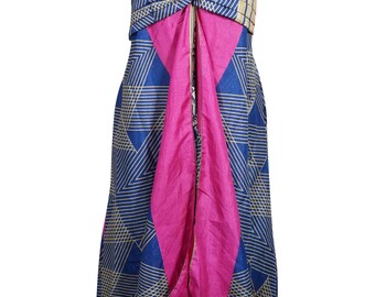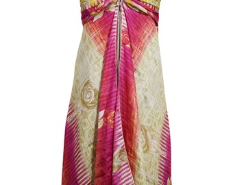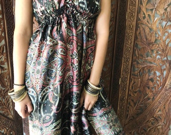 Only 1 available and it's in 2 people's cartsWomens Boho Ruffle Dress, Pink Beige Printed Beach Dress, Spaghetti Strap Recycled Sari Dresses, Summer dresses SM