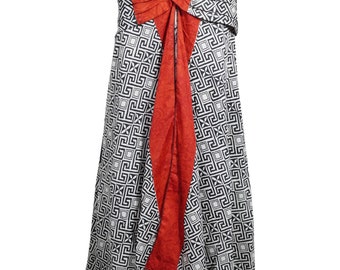Boho Hi Low MAXI Dress Orange Printed Sari Recycled Gypsy Hippie Beach ibiza Party Dress M/L