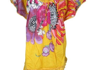 Womens Summer Gypsy Dresses, Boho Yellow Floral Printed Loose Vintage Home BEACH Dresses M