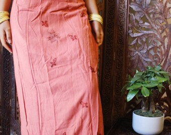 Women Embroidered Wrap Maxi Skirt, Stonewashed Orange Long Skirts, Summer Straight Retro 70s Skirt SM