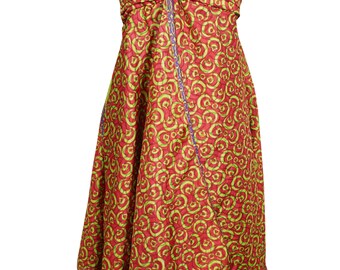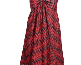 Womens Floral Dress, Recycled sari Midi dress, Spaghetti Strap Beach Dress, Boho chic REd Printed Sundress SM