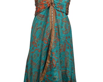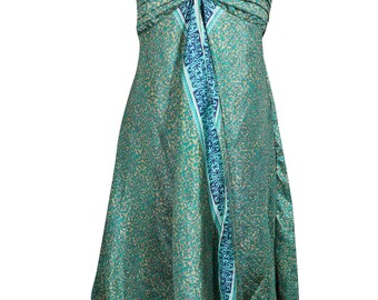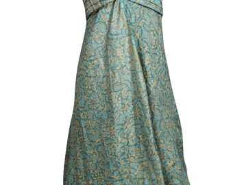 Womens Floral Dress ,Recycled Sari Printed Spaghetti Strap Boho Tank Dresses, Beach Dress, Ethical Fashion SM