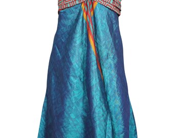 Only 1 leftWomens Beach Dress, Blue Floral Dress , Layered Spaghetti Strap Boho chic Recycled Sari Printed Sundress SM