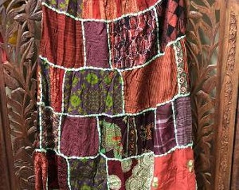 Womens Maxi Skirt, Summer Skirt, Gujarati Patchwork Handmade Vintage Boho Chic Long Skirts SM
