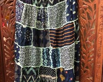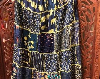 Only 1 available and it's in 1 person's cartWomens Maxi Skirt, Summer Skirt, bLUE Gujarati Patchwork Handmade Vintage Boho Chic Long Skirts SM