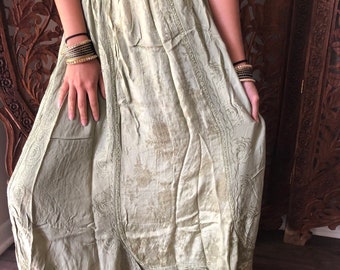 Womens MAXI Skirt Vintage Retro Embroidered Gypsy Skirt Boho Beige Summer Long Skirts M