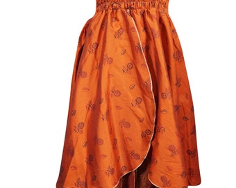 Only 1 available and it's in 1 person's cartOrange Printed Maxi skirt, Boho Dresses, Recycled Sari, Gypsy Flared Skirt, Hi Low Dresses, Strapless Dress, Two Layer Skirt S/M