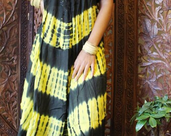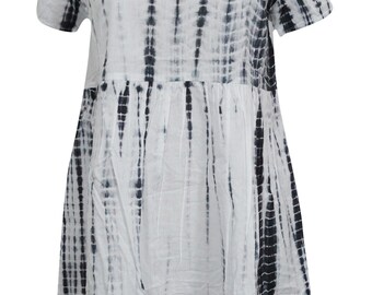 Women Summer Dress, White Black Tie Dye Dress, Bohemian Summer Fashion Retro Boho Dresses M