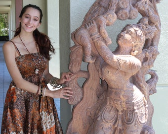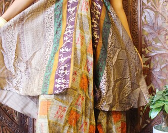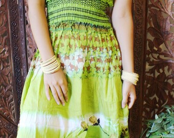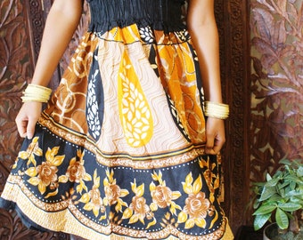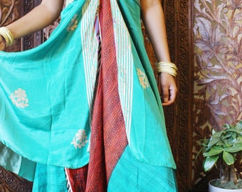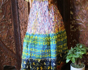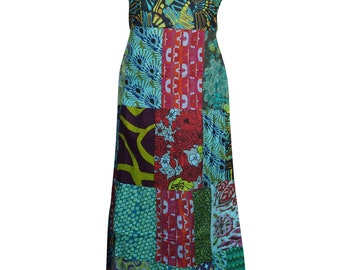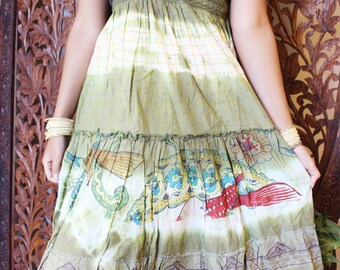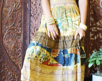 Womens Beach Dress, Multicolor Floral Dress , Layered Spaghetti Strap Boho chic Recycled Sari Printed Sundress SM