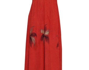 Womens Boho Dress, Red Cotton Printed Dresses, Summer Comfy Handmade Sleeveless House Dresses M