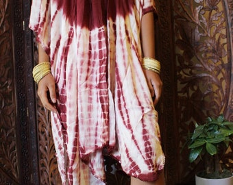 Women Summer Dress, White Red Tie Dye Dress, SOFT SUMMER Loose Top Comfy Kimono Tunic L/XL