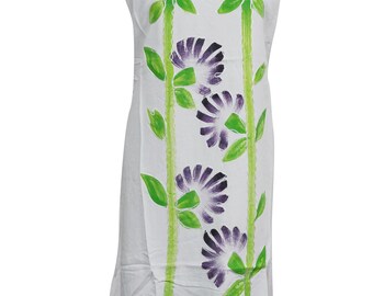 Womens Maxi Strap Dresses, Cotton Tie Dye Dress Purple Floral Embroidered Sexy Summer Dresses SM