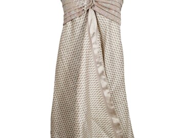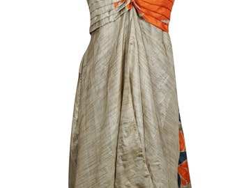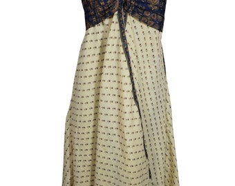 Womens Floral Dress, Recycled sari Midi dress, Spaghetti Strap Beach Dress, Boho bEIGE Printed Sundress SM