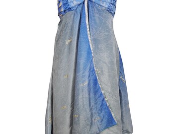 Flower Child Maxi Dresses Recycled Sari Hi Low Dress Floral Print Strapless Boho Dress Bohemian Chic Beach M/L