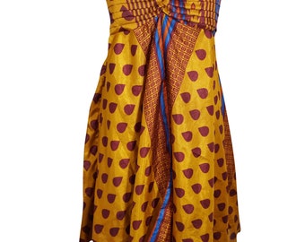 Womens Floral Dress ,Boho chic Recycled Sari Red Yellow Printed Sundress, Layered Spaghetti Strap Beach Dress, SM