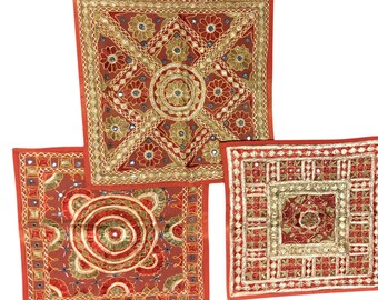 Only 1 leftBoho Ethnic Handwork Floral Embroidered Cushion Pillow Cover Cotton Shabby Chic 3 Pcs 16" x16"