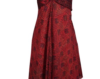 Womens Red Floral Dress, Recycled sari Midi dress, Spaghetti Strap Beach Dress, Boho chic Printed Sundress SM