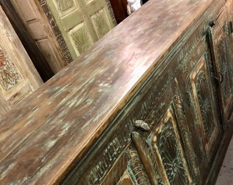 Antique Indian Doors Rustic Credenza, Farmhouse Sideboard, Kitchen Buffet, Media Chest, Long Cabinet Storage