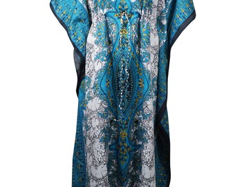 (15% off)Womens Bohemian Kaftan, Blue Printed Kaftan Dress, Caftan Maxi Dress, Beach Dress, Resort Wear Caftan 3X