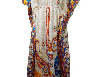 (15% off)Women Kaftan Maxi Dress, Bohemian Kaftan, Beige,Blue Printed Kaftan, Summer Resort Wear, Beachwear Long Caftan One Size